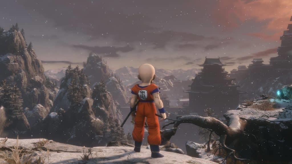 Dragon Ball’s Krillin character model integrated into Sekiro’s world. This crossover modification brings Dragon Ball’s Krillin into Sekiro as a complete character replacement. While the character’s distinct appearance creates noticeable aesthetic contrast with Sekiro’s feudal Japanese environment, the novelty of controlling this iconic martial artist provides unique entertainment value for fans of both franchises.