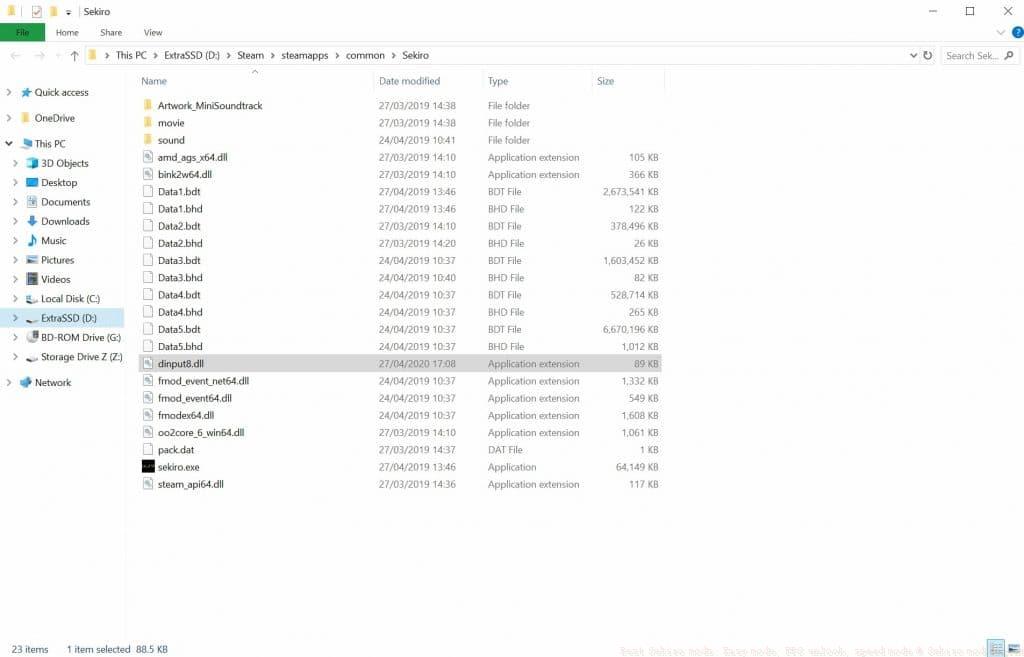 - Copy all extracted files and paste them into your Sekiro game directory