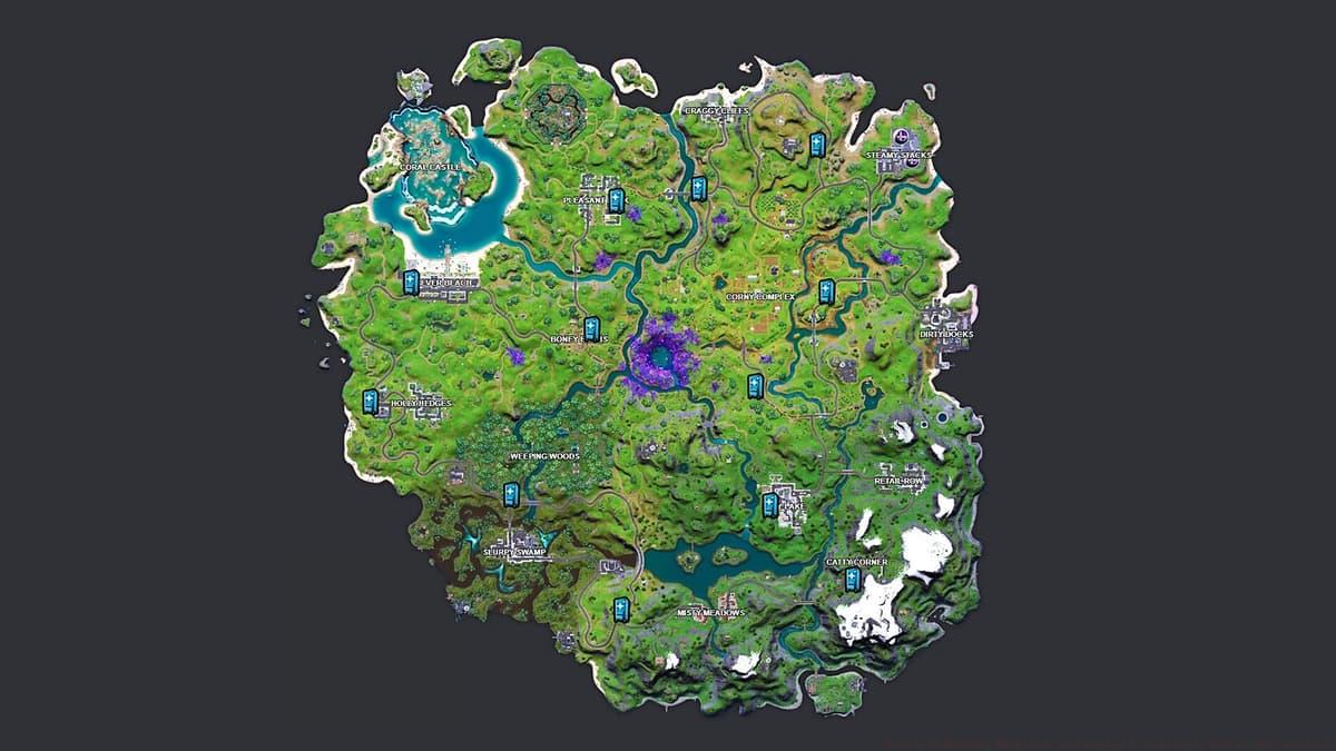 Epic Games / fortnite.ggLand at less crowded machines early-game to stock up safely. Mid-game, prioritize machines near storm edges for quick resupply during rotations. The map above marks all current locations – study it to plan efficient loot routes.