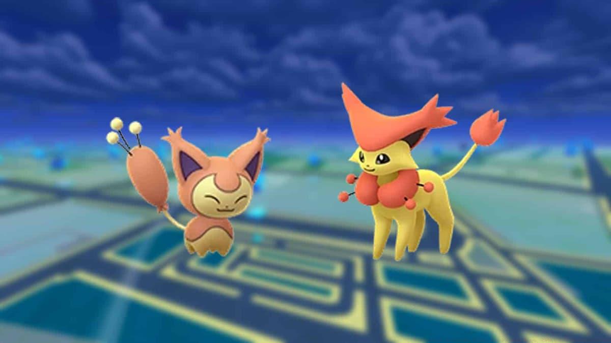 NianticStandard shiny Skitty and its evolutionary form display subtle pink hue variations