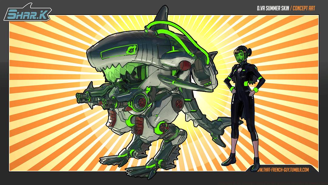 The gaming community continues to champion Max Simoneau’s 2019 Shar.K concept as the perfect Summer Games skin for D.Va, addressing her four-year cosmetic drought since the Waveracer release.