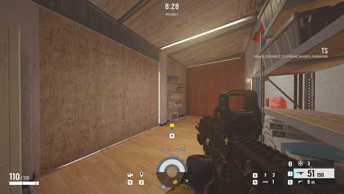 While the core rooms remain similar, the surrounding hallways are redesigned. The Garage approach is now safer due to shelving that blocks defender sightlines. Crucially, a new breachable external wall in Office Supply (East side) creates a direct entry point, eliminating the need to vault through a barricade. This allows for faster, quieter pushes and enables operators like Sledge or Ash to open a new path for the team.