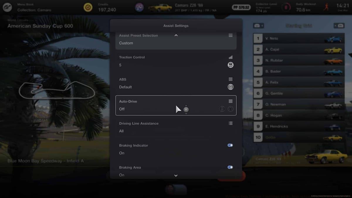 With general configuration complete, focus next on the comprehensive Assist settings available before each racing event. These can be adjusted per activity, allowing customization for specific tracks and conditions.Begin by modifying your Assist Preset Selection. Switch this to Custom mode to unlock granular control over individual assistance systems for precise tuning.Your primary adjustment should target the Auto Drive setting. By default, Gran Turismo intervenes automatically during certain driving situations—applying brakes for corners or correcting steering when drifting off-course.For genuine skill development, disable Auto Drive immediately. This grants complete vehicle control and represents the most authentic path to mastering advanced driving techniques.