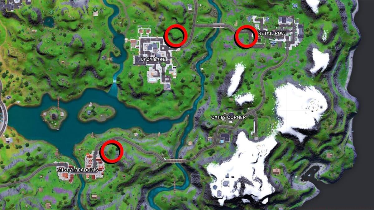 Successful challenge completion requires deploying one surveillance device at each designated location, with progress persisting across multiple matches. However, single-match completion remains optimal due to the strategic proximity of all three positions. The recommended Lazy Lake to Retail Row to Misty Meadows route creates an efficient triangular path minimizing travel distance.
